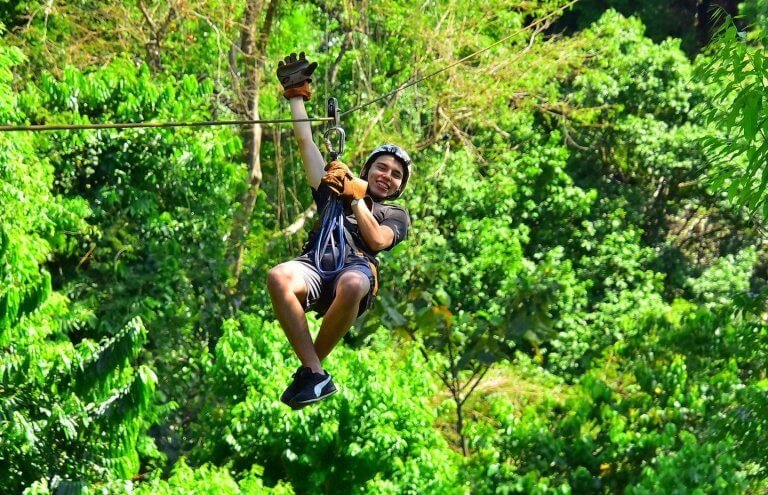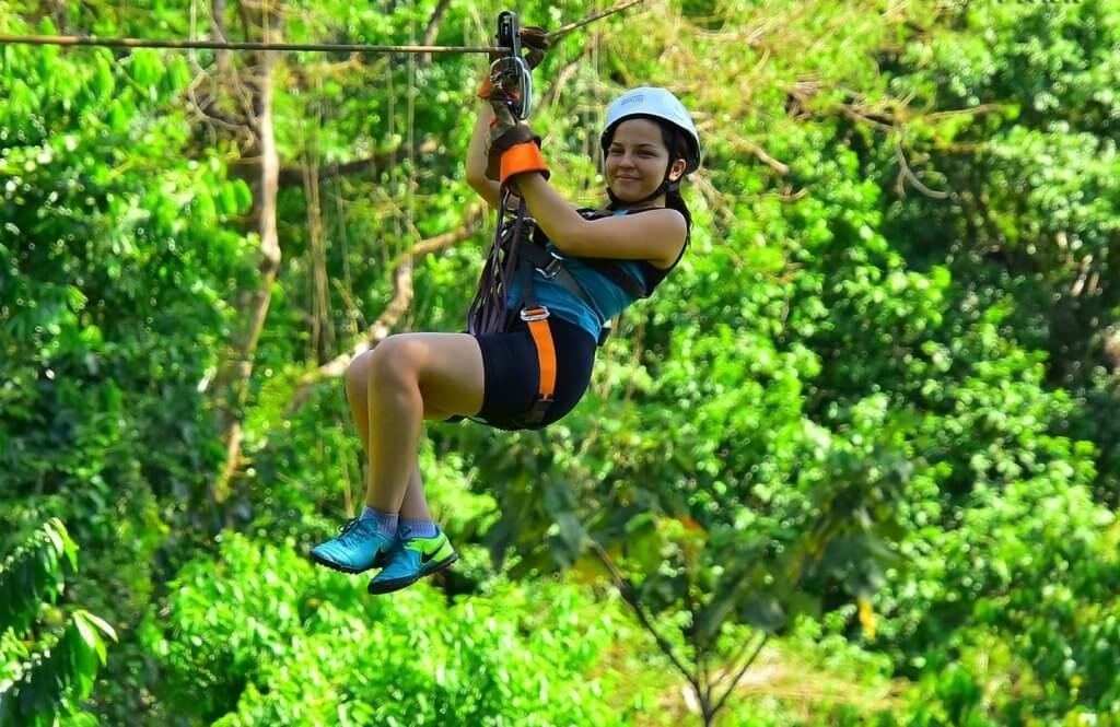 Professional guides ensure your safety and provide fascinating insights into the rich biodiversity, starting with a 15-minute ride aboard our specially designed tractor. Once we reach the top of the mountain, we will explain step-by-step all the safety procedures you must follow. We then descend to the bottom via a series of zip lines, including 12 platforms and 10 cables with a total cable distance of 3.5 kilometers, among them the longest cable in the area (2400 ft.).